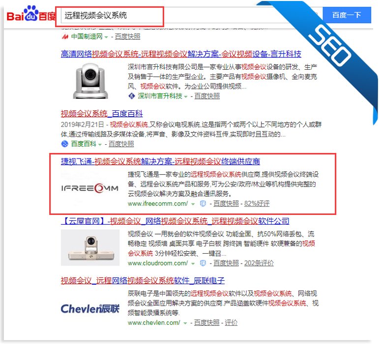 捷視飛通是視頻會(huì)議領(lǐng)域?qū)<?,新三板上市企業(yè),公司品牌官網(wǎng)建成后,一直沒有開始seo優(yōu)化,2017年前公司討論市場(chǎng)推廣計(jì)劃,將網(wǎng)絡(luò)推廣作為重要市場(chǎng)拓展渠道之一。而網(wǎng)站優(yōu)化做為網(wǎng)絡(luò)推廣中之中,捷視飛通品牌推廣負(fù)責(zé)人找到了我們,在了解我們?cè)趕eo領(lǐng)域的眾多成功案例之后,選擇了與我們合作。經(jīng)過我們?nèi)娴姆治?,捷視飛通之前沒有移動(dòng)端的網(wǎng)站,只是一個(gè)微信端的網(wǎng)站,但微信端的網(wǎng)站無法在搜索引擎被搜索到,結(jié)合當(dāng)前移動(dòng)互聯(lián)網(wǎng)的趨勢(shì),更多的人通過移動(dòng)端查找信息,因此最后由我們同時(shí)承接移動(dòng)手機(jī)網(wǎng)站建設(shè),同時(shí)移動(dòng)端優(yōu)化也納入推廣計(jì)為范疇。