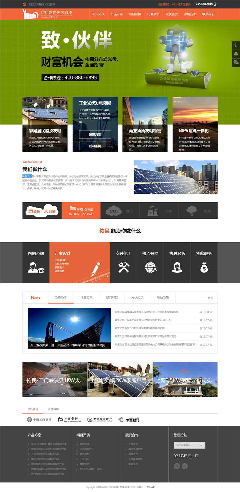 佑民光伏是一家集太陽能光伏組件生產(chǎn)銷售、光伏電站建設(shè)運(yùn)營、光伏發(fā)電項(xiàng)目金融投資等業(yè)務(wù)于一體的綜合型企業(yè)。公 司結(jié)合自身優(yōu)勢資源,推出分布式光伏發(fā)電系統(tǒng)品牌—“佑民光伏”。針對居民屋頂、工商業(yè)屋頂、公共設(shè)施、學(xué)校建筑和光伏建筑一體化(BIPV)等項(xiàng)目提供太陽能光伏發(fā)電系統(tǒng)設(shè)計(jì)、安裝、維護(hù)、運(yùn)營一站式解決方案...