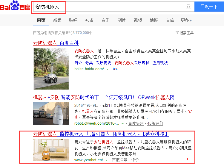 關(guān)鍵詞:安防機器人 百度首頁排名