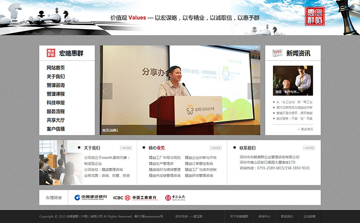 深圳市宏略惠群企業(yè)管理咨詢 成立于2013年,是由多名企業(yè)高管人士及資深咨詢專家共同創(chuàng)辦的創(chuàng)新型顧問公司。公司的愿景目標(biāo)是成為企業(yè)經(jīng)營與管理智慧集結(jié)營,旨在響應(yīng)企業(yè)發(fā)展的實(shí)際需求,集優(yōu)、整合與創(chuàng)新企業(yè)經(jīng)營與管理方法與技術(shù),助推中國企業(yè)的持續(xù)成功。